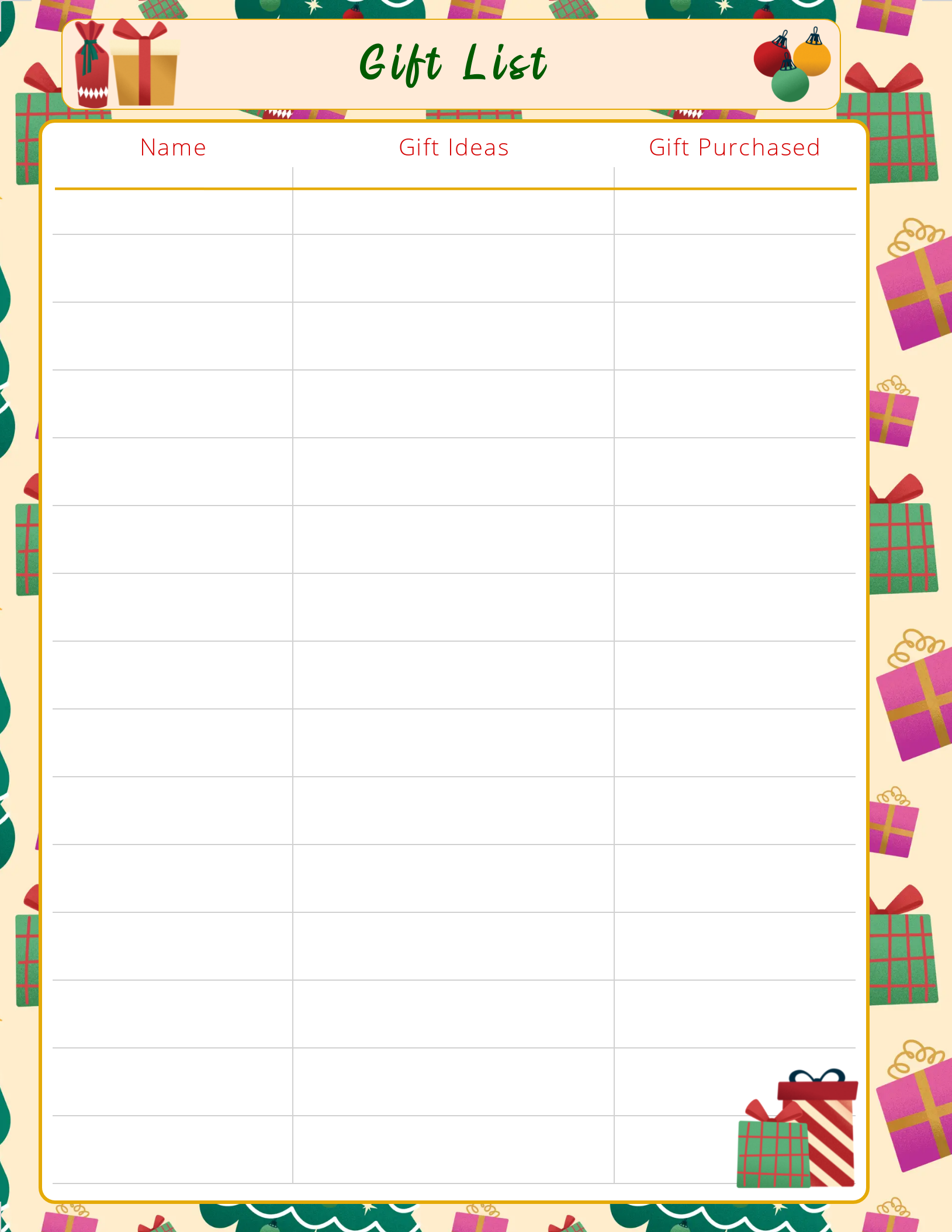 Gift List, Holiday Gift Shopping, Christmas Gift List, Digital Download, Prointable, Personal Use ONLY, Holiday organizing, Christmas orgainizing